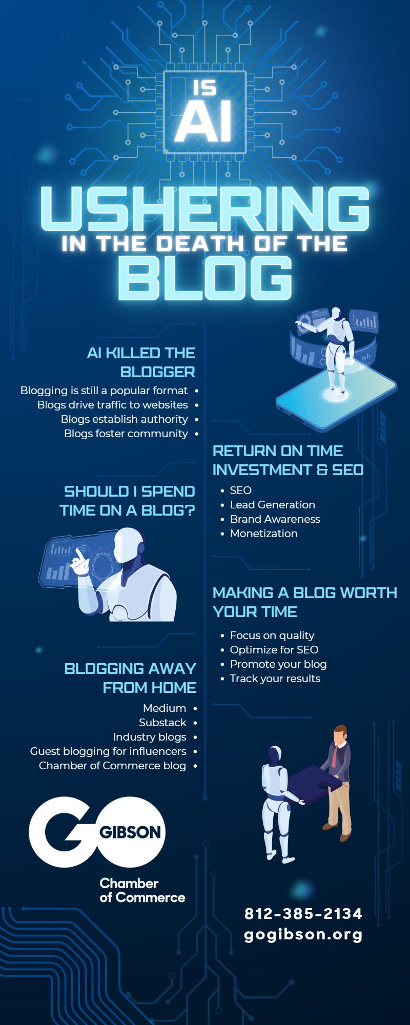 According to AI, blogs are not dead so our question about AI killing blogs doesn't appear to be a valid one. However, how valuable will written content be when it all starts to sound the same? If you are using AI to write your business blog, make sure you're doing the work to help it understand your blogging goals and tone. If all blogs begin to sound the same, the format will surely die (my prediction not AI's). | |