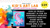oin us on Friday, January 16, for an adorable Axolotl canvas painting event with Peony & Pine from 5pm-6:30pm! Ages 7-14! A light snack and juice box will be provided. Sign up here: https://tinyurl.com/3ydy8ud4