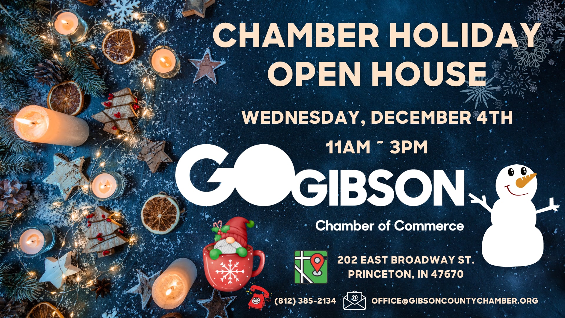 Wednesday, December 4th from 11am - 3 pm @ the Chamber Conference Room. Come meet The Chamber and join in on the fun, food and networking!!!