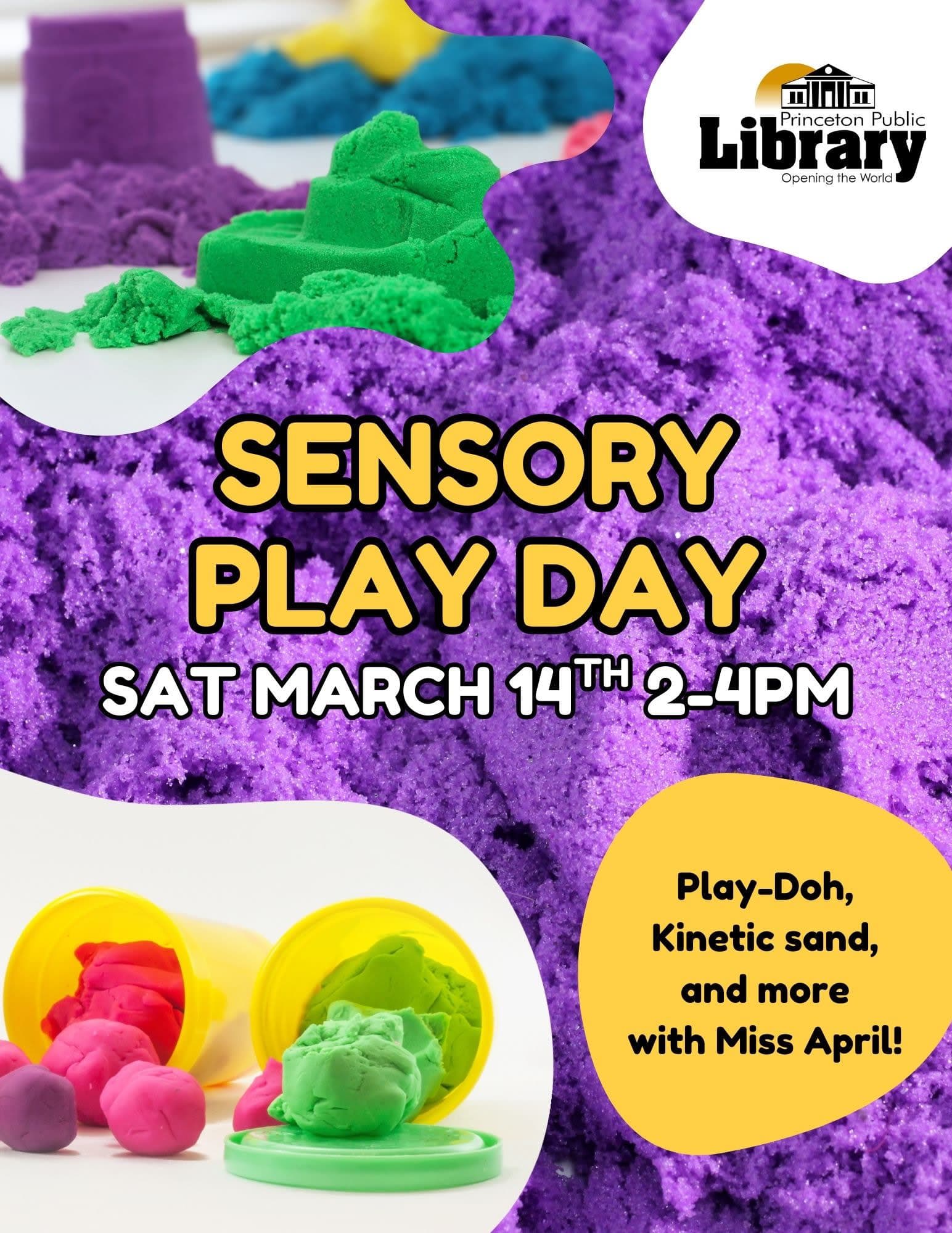 Play-Doh, Kinetic sand, low-fi music and having sensory fun! Join Miss April from 2-4 in the afternoon!