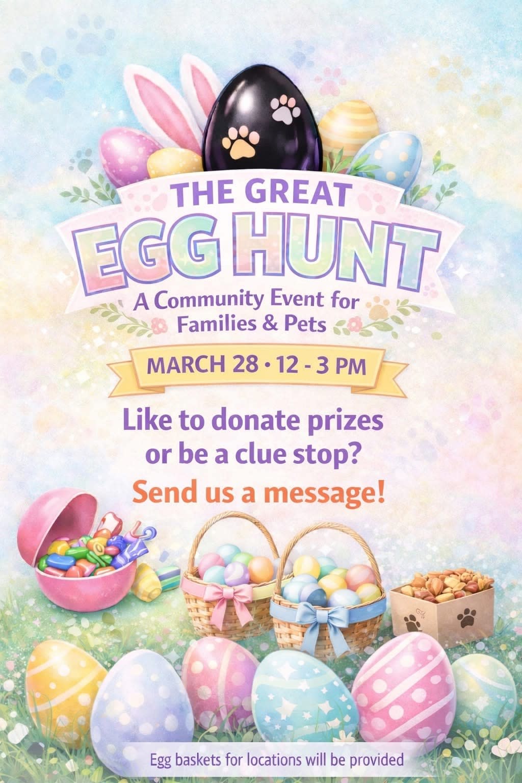 Clues can be picked up starting a 12 noon on March 28th at Tail of 2 Groomers in Oakland City! Each location will have a basket of eggs & a note describing a task you must complete before moving on to the next location! Please only take ONE egg per location! Anyone bringing their pups along for their safety & others please keep your pet leashed at all times. If baskets are placed at any locations you are not normally aloud to bring your pet into then the basket will be located outdoors! The 1st person to successfully find and complete the tasks at all locations will receive the grand prize! More details to come later this week!Images