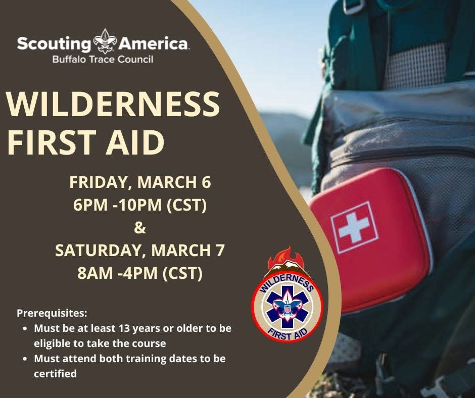 Wilderness First Aid Training⛑️ 📅Friday, March 6 from 6pm-10pm (CST) & 📅Saturday, March 7 from 8am-4pm (CST) **🚨🚨Must attend both dates to be certified 🚨🚨** 📍Eykamp Scout 3501 E. Lloyd Expressway Evansville, IN 47715 📝Space is limited. Register Today! https://scoutingevent.com/156-WFASpring2026 Wilderness First Aid Training is designed for Scouts and Scout Leaders, outdoor enthusiasts, and anyone who works or spends time in remote environments. This course teaches advanced skills to be used in emergencies when help from professional first responders may be far away. Training Includes: * Primary & Secondary Assessments * Head/Brain, Neck, and Spinal Injuries * Heat-Related Emergencies * Hypothermia * Altitude-Related Illness * Allergies & Anaphylaxis * Burns * Bone & Joint Injuries * Wounds & Wound Infection